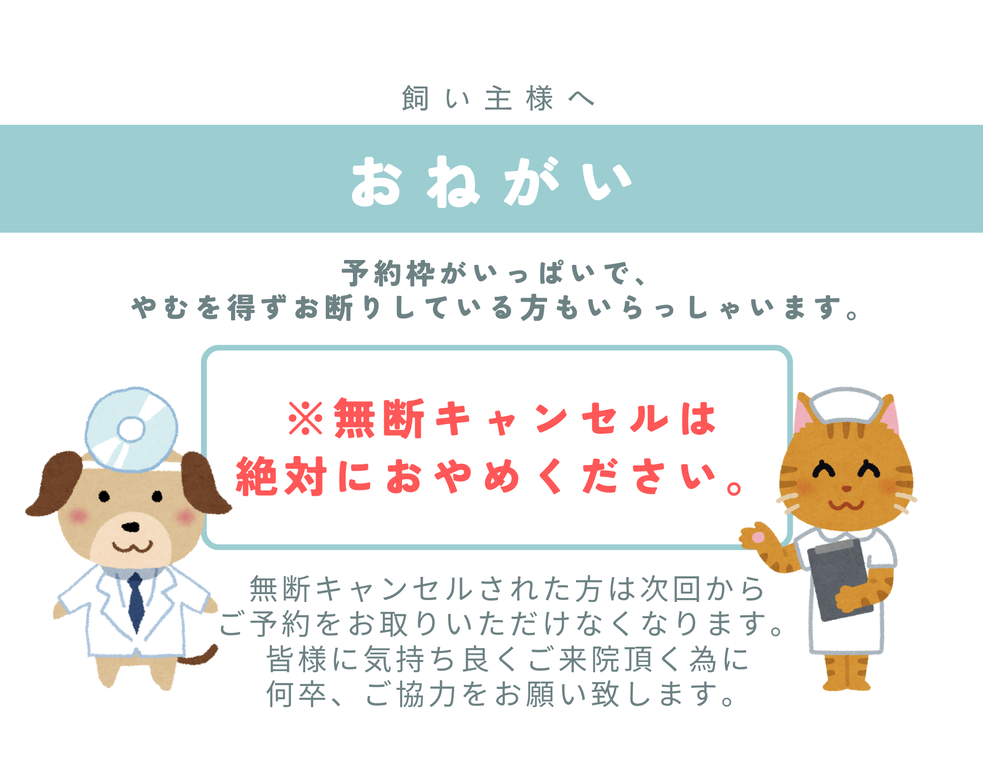 - 土日祝は大変混み合い、急病対応が出来なくなっております。 ご予約はなるべく平日の午前中でのご協力をお願いしております。